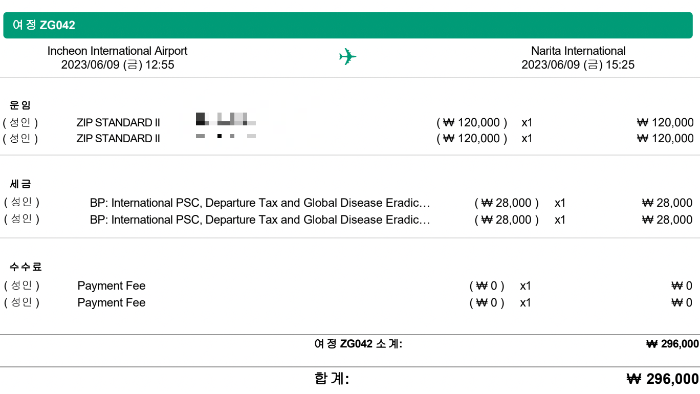 | 항공 | 632,000원 | 인천 - 나리타 (수하물 미포함) 296,000원 나리타 - 인천 (수하물 15Kg 포함) 336,000원 인당 316,000원 |